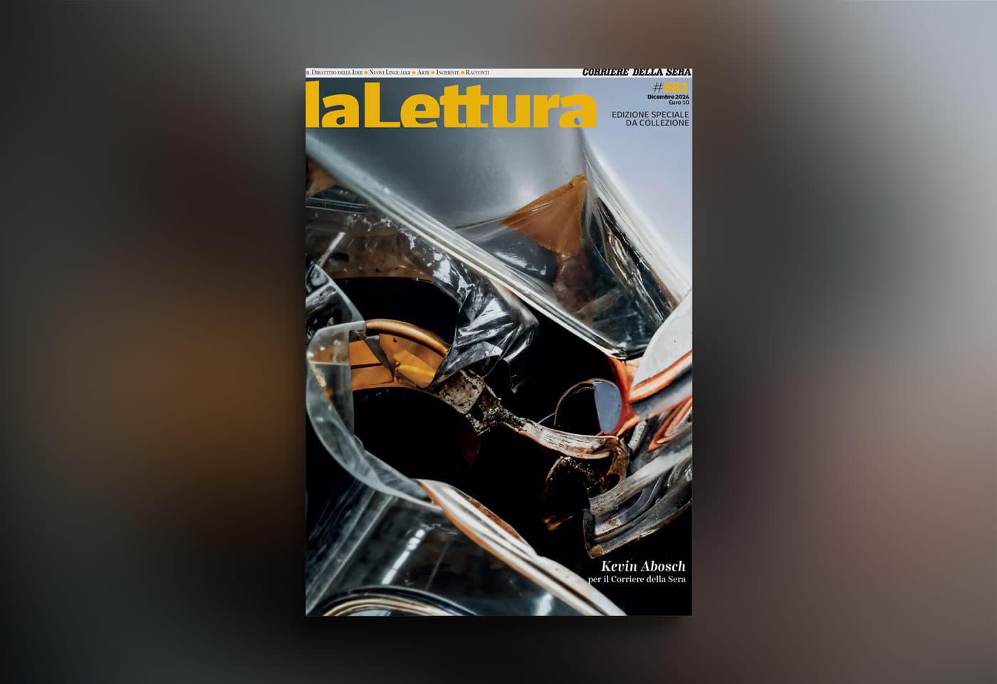 In a reflection on Abosch's artwork, Gianluigi Colin, Art Director at Corriere della Sera, writes, “The artwork featured on our cover by Kevin Abosch is part of the series Ethical Compositions and Ethical Objects. It showcases indistinct materials: fabrics, plastics, and metals; rendered in a way that feels almost like abstract art. However, with this piece, Irish artist Kevin Abosch (b. 1969) addresses the complex themes surrounding artificial intelligence, ethics, and the indiscriminate use of photography generated by digital processes. Kevin Abosch is, in fact, a pioneer of digital art and one of its most recognized figures. His works span sculpture, installations, artificial intelligence, video, and, of course, photography. It is no coincidence that Abosch gained significant fame for selling a photograph of a potato for one million dollars.