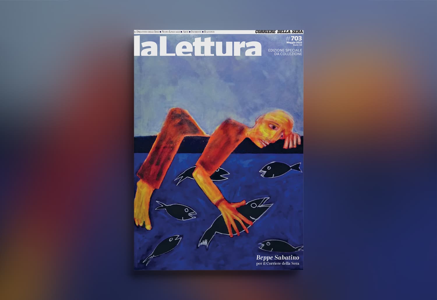 As Gianluigi Colin, Art Director at Corriere della Sera, explains: "In the Christian world, the fish is the symbol representing Christ, the God who became man. Perhaps for this reason Beppe Sabatino titled the work on our cover 'Il raccoglitore di anime': we see a man with his hands immersed in the sea in a primordial gesture, almost as if it were a ritual act, which inevitably evokes the recovery of the bodies of migrants submerged and devoured by the Mediterranean. That man is no longer a fisher of life, but of lost souls, of forgotten people."